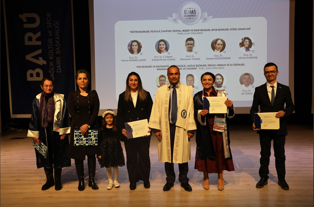 “Akademik Performans Ödül Töreni” ile devam eden programda, 2024 yılı içerisinde uluslararası saygın dizinlerde taranan dergilerde en fazla yayın yapan öğretim elemanları sahneye davet edildi. Nitelikli bilimsel çalışmaları ve araştırma performanslarıyla öne çıkan akademisyenler; Eğitim Bilimleri, Filoloji, İlahiyat, Sosyal, Beşeri ve İdari Bilimler, Spor Bilimleri ve Güzel Sanatlar temel alanları ile Fen Bilimleri ve Matematik, Mühendislik, Sağlık Bilimleri, Ziraat, Orman ve Su Ürünleri, Mimarlık, Planlama ve Tasarım temel alanlarında değerlendirildi.